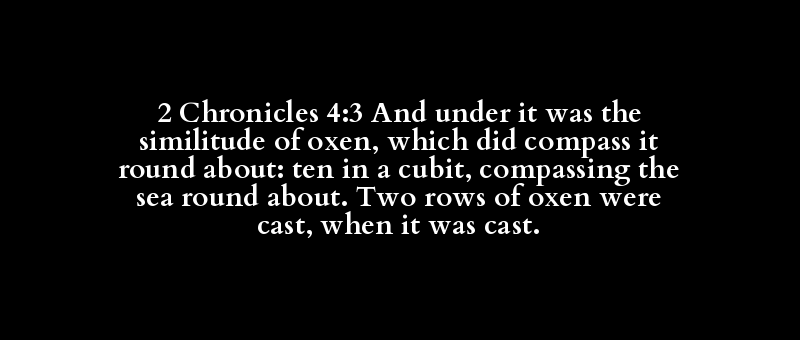 2 Chronicles 4:3 And under it was the similitude of oxen, which did compass it round about: ten in a cubit, compassing the sea round about. Two rows of oxen were cast, when it was cast.