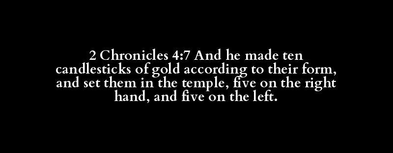 2 Chronicles 4:7 And he made ten candlesticks of gold according to their form, and set them in the temple, five on the right hand, and five on the left.