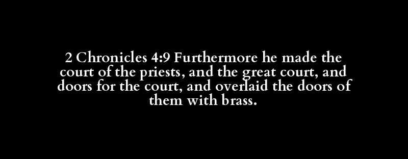2 Chronicles 4:9 Furthermore he made the court of the priests, and the great court, and doors for the court, and overlaid the doors of them with brass.