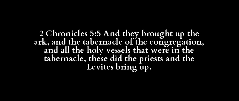 2 Chronicles 5:5 And they brought up the ark, and the tabernacle of the congregation, and all the holy vessels that were in the tabernacle, these did the priests and the Levites bring up.
