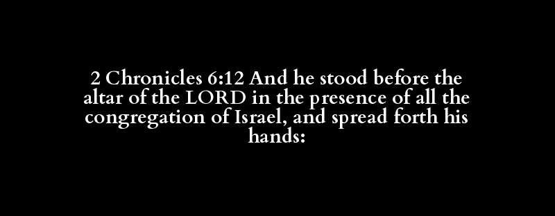 2 Chronicles 6:12 And he stood before the altar of the LORD in the presence of all the congregation of Israel, and spread forth his hands: