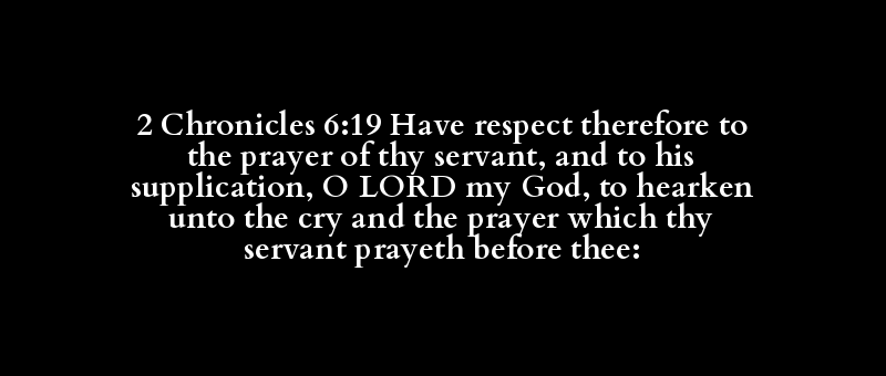 2 Chronicles 6:19 Have respect therefore to the prayer of thy servant, and to his supplication, O LORD my God, to hearken unto the cry and the prayer which thy servant prayeth before thee: