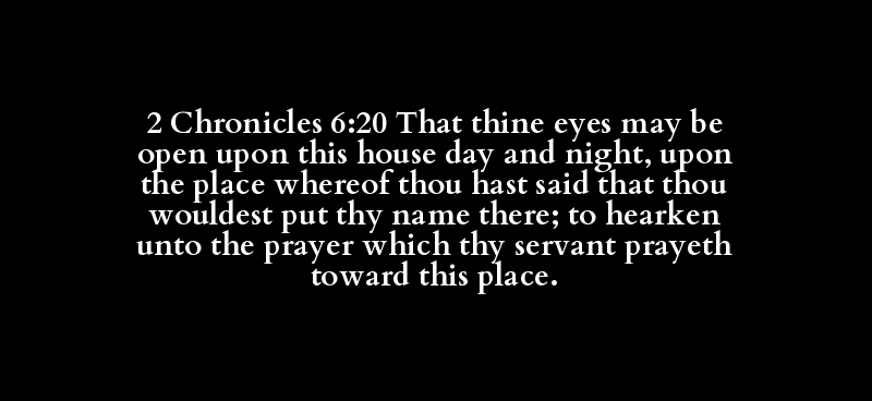 2 Chronicles 6:20 That thine eyes may be open upon this house day and night, upon the place whereof thou hast said that thou wouldest put thy name there; to hearken unto the prayer which thy servant prayeth toward this place.