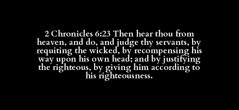 2 Chronicles 6:23 Then hear thou from heaven, and do, and judge thy servants, by requiting the wicked, by recompensing his way upon his own head; and by justifying the righteous, by giving him according to his righteousness.