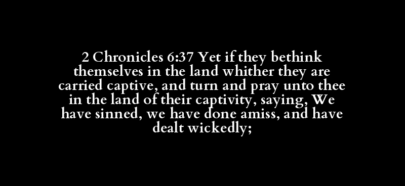 2 Chronicles 6:37 Yet if they bethink themselves in the land whither they are carried captive, and turn and pray unto thee in the land of their captivity, saying, We have sinned, we have done amiss, and have dealt wickedly;