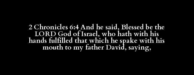 2 Chronicles 6:4 And he said, Blessed be the LORD God of Israel, who hath with his hands fulfilled that which he spake with his mouth to my father David, saying,