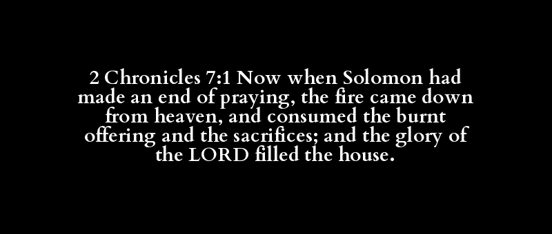 2 Chronicles 7:1 Now when Solomon had made an end of praying, the fire came down from heaven, and consumed the burnt offering and the sacrifices; and the glory of the LORD filled the house.