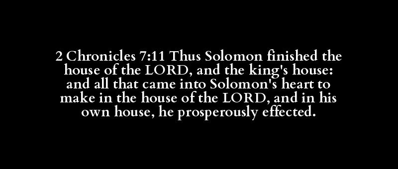 2 Chronicles 7:11 Thus Solomon finished the house of the LORD, and the king's house: and all that came into Solomon's heart to make in the house of the LORD, and in his own house, he prosperously effected.