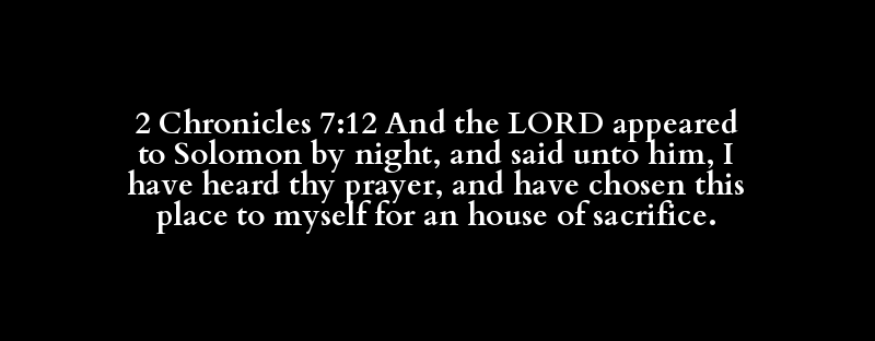 2 Chronicles 7:12 And the LORD appeared to Solomon by night, and said unto him, I have heard thy prayer, and have chosen this place to myself for an house of sacrifice.