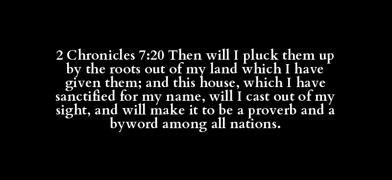 2 Chronicles 7:20 Then will I pluck them up by the roots out of my land which I have given them; and this house, which I have sanctified for my name, will I cast out of my sight, and will make it to be a proverb and a byword among all nations.