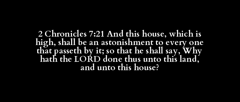 2 Chronicles 7:21 And this house, which is high, shall be an astonishment to every one that passeth by it; so that he shall say, Why hath the LORD done thus unto this land, and unto this house?