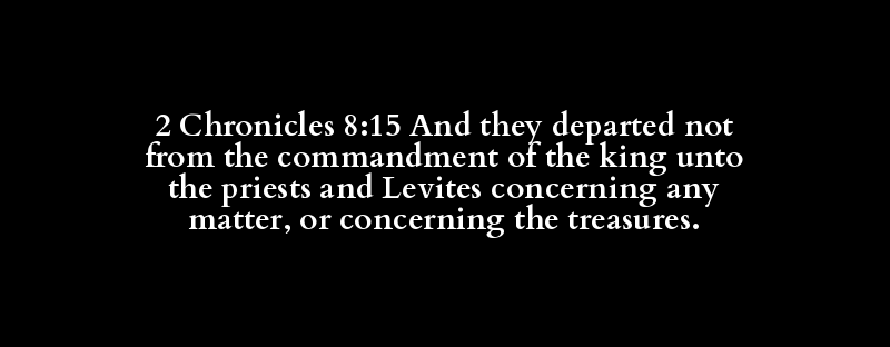 2 Chronicles 8:15 And they departed not from the commandment of the king unto the priests and Levites concerning any matter, or concerning the treasures.