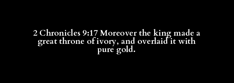 2 Chronicles 9:17 Moreover the king made a great throne of ivory, and overlaid it with pure gold.