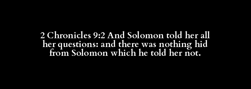 2 Chronicles 9:2 And Solomon told her all her questions: and there was nothing hid from Solomon which he told her not.