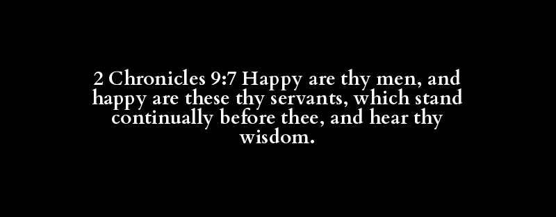 2 Chronicles 9:7 Happy are thy men, and happy are these thy servants, which stand continually before thee, and hear thy wisdom.