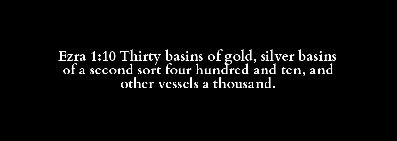 Ezra 1:10 Thirty basins of gold, silver basins of a second sort four hundred and ten, and other vessels a thousand.