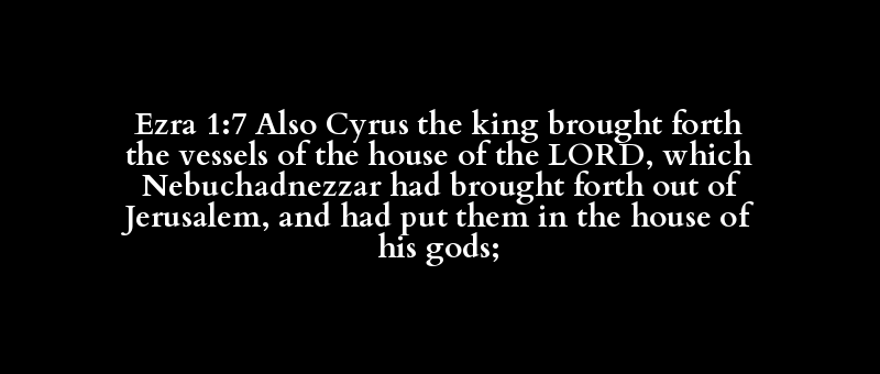 Ezra 1:7 Also Cyrus the king brought forth the vessels of the house of the LORD, which Nebuchadnezzar had brought forth out of Jerusalem, and had put them in the house of his gods;