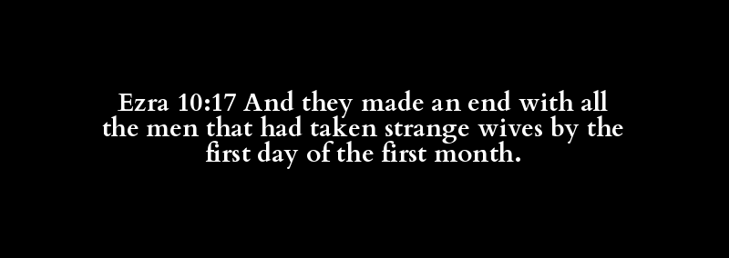 Ezra 10:17 And they made an end with all the men that had taken strange wives by the first day of the first month.