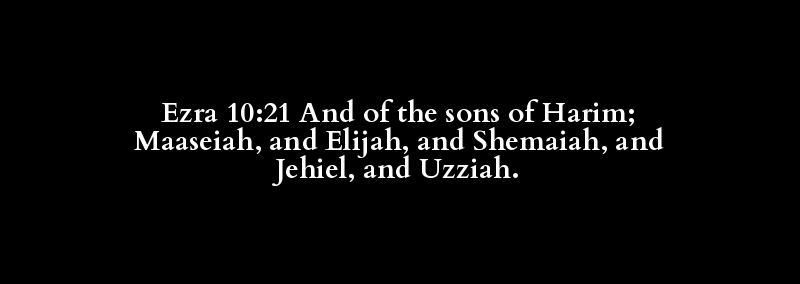 Ezra 10:21 And of the sons of Harim; Maaseiah, and Elijah, and Shemaiah, and Jehiel, and Uzziah.