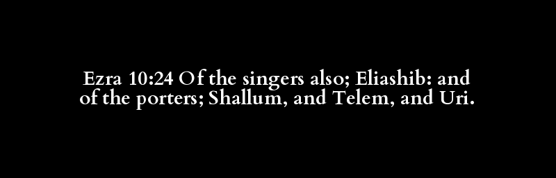 Ezra 10:24 Of the singers also; Eliashib: and of the porters; Shallum, and Telem, and Uri.