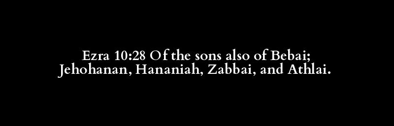Ezra 10:28 Of the sons also of Bebai; Jehohanan, Hananiah, Zabbai, and Athlai.