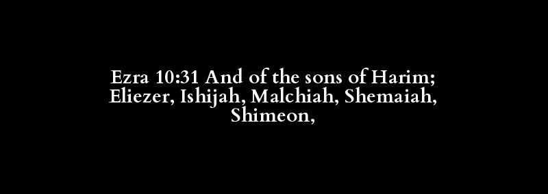 Ezra 10:31 And of the sons of Harim; Eliezer, Ishijah, Malchiah, Shemaiah, Shimeon,