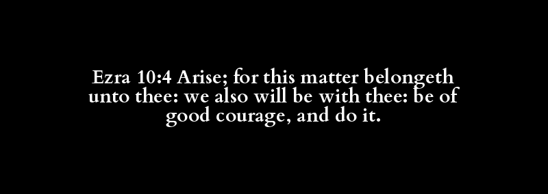 Ezra 10:4 Arise; for this matter belongeth unto thee: we also will be with thee: be of good courage, and do it.