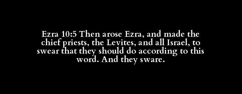Ezra 10:5 Then arose Ezra, and made the chief priests, the Levites, and all Israel, to swear that they should do according to this word. And they sware.