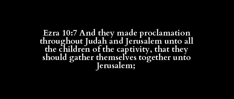 Ezra 10:7 And they made proclamation throughout Judah and Jerusalem unto all the children of the captivity, that they should gather themselves together unto Jerusalem;
