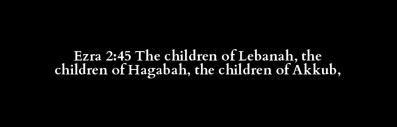 Ezra 2:45 The children of Lebanah, the children of Hagabah, the children of Akkub,