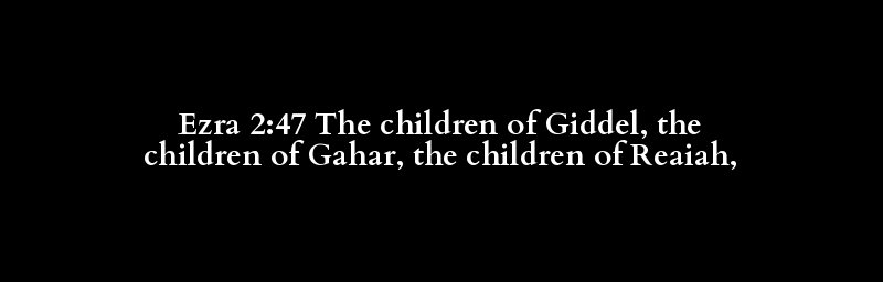 Ezra 2:47 The children of Giddel, the children of Gahar, the children of Reaiah,