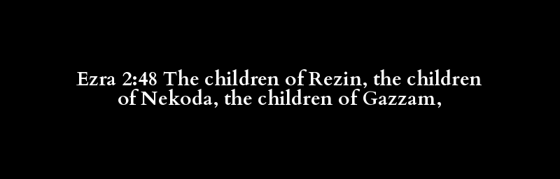 Ezra 2:48 The children of Rezin, the children of Nekoda, the children of Gazzam,