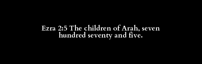 Ezra 2:5 The children of Arah, seven hundred seventy and five.