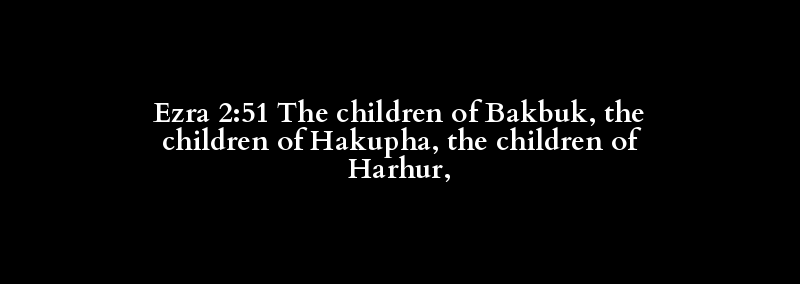Ezra 2:51 The children of Bakbuk, the children of Hakupha, the children of Harhur,