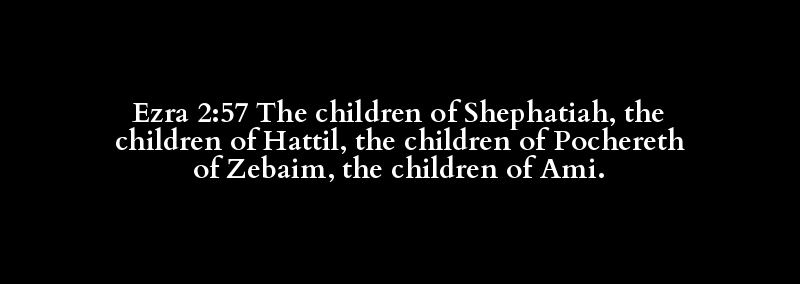 Ezra 2:57 The children of Shephatiah, the children of Hattil, the children of Pochereth of Zebaim, the children of Ami.