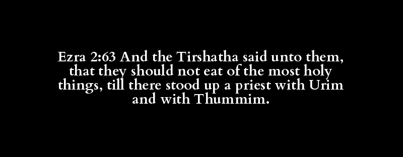 Ezra 2:63 And the Tirshatha said unto them, that they should not eat of the most holy things, till there stood up a priest with Urim and with Thummim.