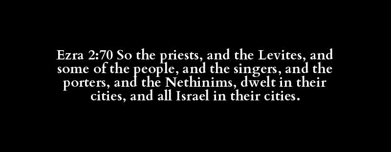 Ezra 2:70 So the priests, and the Levites, and some of the people, and the singers, and the porters, and the Nethinims, dwelt in their cities, and all Israel in their cities.