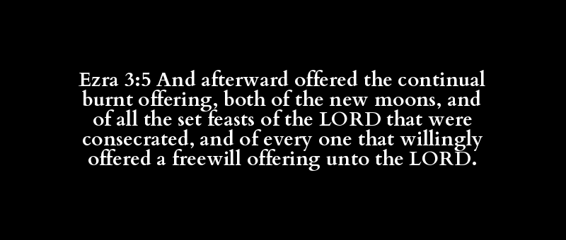 Ezra 3:5 And afterward offered the continual burnt offering, both of the new moons, and of all the set feasts of the LORD that were consecrated, and of every one that willingly offered a freewill offering unto the LORD.
