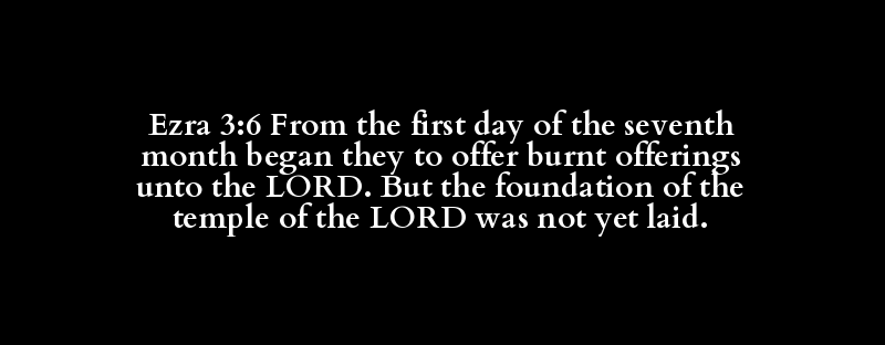 Ezra 3:6 From the first day of the seventh month began they to offer burnt offerings unto the LORD. But the foundation of the temple of the LORD was not yet laid.