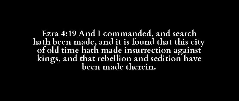 Ezra 4:19 And I commanded, and search hath been made, and it is found that this city of old time hath made insurrection against kings, and that rebellion and sedition have been made therein.