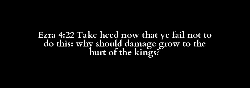 Ezra 4:22 Take heed now that ye fail not to do this: why should damage grow to the hurt of the kings?