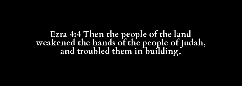 Ezra 4:4 Then the people of the land weakened the hands of the people of Judah, and troubled them in building,