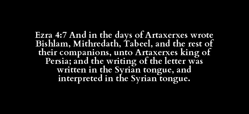 Ezra 4:7 And in the days of Artaxerxes wrote Bishlam, Mithredath, Tabeel, and the rest of their companions, unto Artaxerxes king of Persia; and the writing of the letter was written in the Syrian tongue, and interpreted in the Syrian tongue.