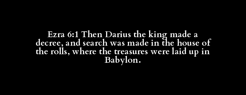Ezra 6:1 Then Darius the king made a decree, and search was made in the house of the rolls, where the treasures were laid up in Babylon.