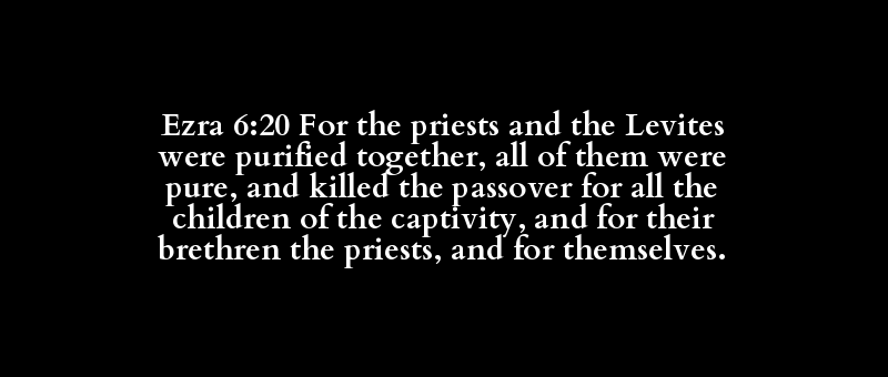 Ezra 6:20 For the priests and the Levites were purified together, all of them were pure, and killed the passover for all the children of the captivity, and for their brethren the priests, and for themselves.