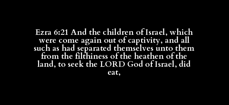 Ezra 6:21 And the children of Israel, which were come again out of captivity, and all such as had separated themselves unto them from the filthiness of the heathen of the land, to seek the LORD God of Israel, did eat,