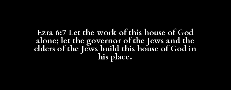 Ezra 6:7 Let the work of this house of God alone; let the governor of the Jews and the elders of the Jews build this house of God in his place.