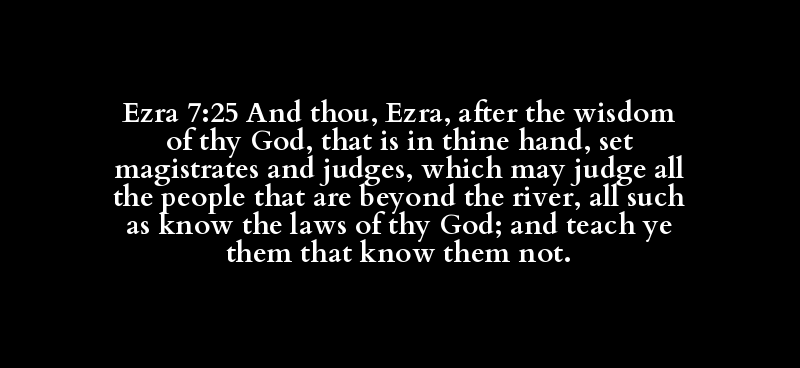 Ezra 7:25 And thou, Ezra, after the wisdom of thy God, that is in thine hand, set magistrates and judges, which may judge all the people that are beyond the river, all such as know the laws of thy God; and teach ye them that know them not.