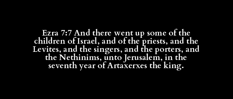 Ezra 7:7 And there went up some of the children of Israel, and of the priests, and the Levites, and the singers, and the porters, and the Nethinims, unto Jerusalem, in the seventh year of Artaxerxes the king.