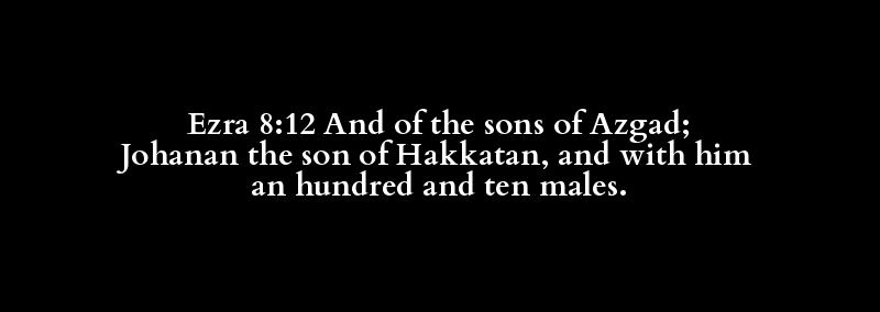 Ezra 8:12 And of the sons of Azgad; Johanan the son of Hakkatan, and with him an hundred and ten males.